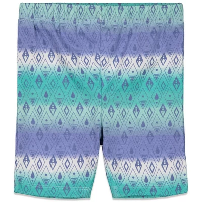 - All over print design; Bike shorts; Fashionable ruffle sleeves; Rib knit crew neck collar; Awesome screen print design; Cute and stylish ruffles by shoulders; Elastic waist for better fit; Pull on closure