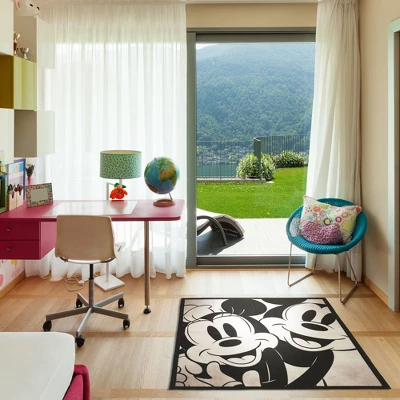 An Original Since 1928, this Classic Mickey and Minne Rug will be a great addition to any family room, playroom or bedroom. Mickey and Minnie fans of all ages will enjoy this jumbo area rug measuring 4’6″ x 4’6″. Digitally Printed for exceptional color and detail, it is sure to capture all things nostalgic and vintage.